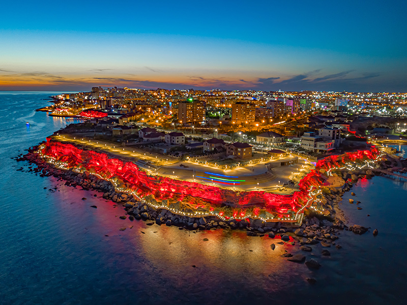 شهر آکتائو، واقع در سواحل شرقی دریای خزر، یکی از مقاصد پنهان قزاقستان است. جاذبه های آکتائو هر ساله گردشگران زیادی را از سراسر دنیا به خود جذب میکنند. شهر آکتائو که به دلیل موقعیت استراتژیک و مناظر خیرهکنندهاش شناخته میشود، ترکیبی از طبیعت بکر و مدرنیته شهری را به نمایش میگذارد. از سواحل طلایی و آبهای نیلگون خزر تا پارکهای سرسبز و معماری خاص، آکتائو سفری فراموشنشدنی برای هر مسافری خلق میکند. همچنین، نزدیکی این شهر به مناطق کوهستانی و بیابانی، آن را به مقصدی ایدهآل برای علاقهمندان به اکوتوریسم تبدیل کرده است.
